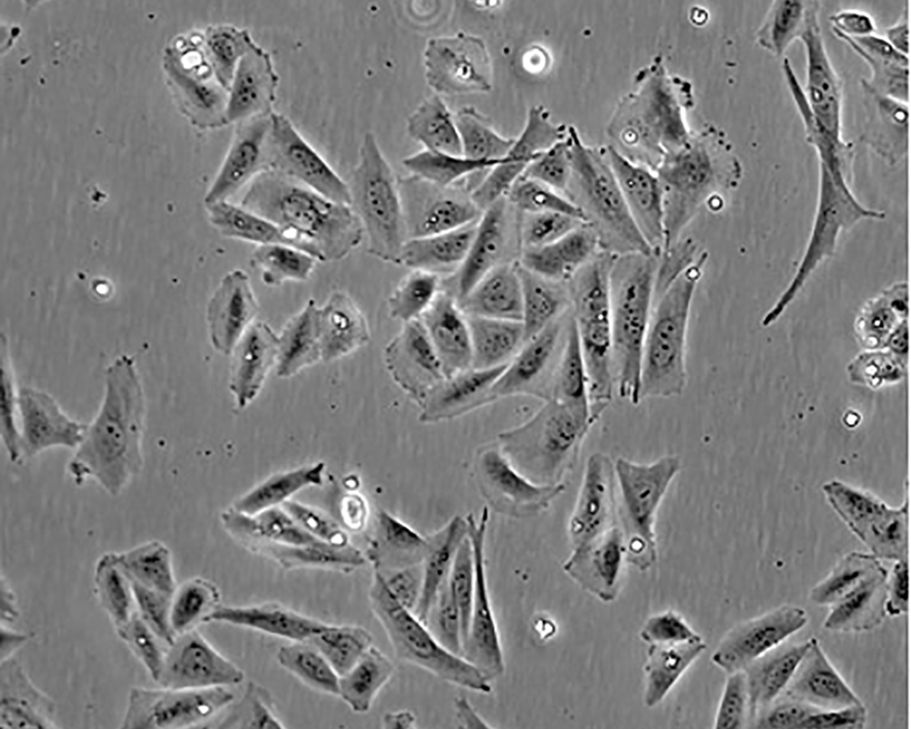 該細胞是FoghJ和TrempeG分離和鑒定的眾多人類腫瘤細胞系中的一種;該細胞來自一位11歲的白人女性的骨肉瘤組織?;颊呓?jīng)過放療以及氨甲喋呤、阿霉素、長春新堿、環(huán)磷酰胺和aramycin-C等多種藥物治療。該細胞在免疫抑制小鼠中不致瘤,細胞表達表皮生長因子EGF受體、轉(zhuǎn)化生長因子β(1型和2型)受體。 |