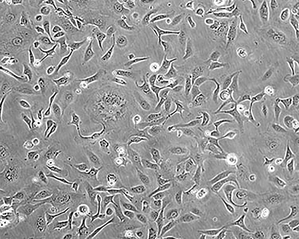 如果細(xì)胞密度達(dá)80%-90%,即可進(jìn)行傳代培養(yǎng)。1. 棄去培養(yǎng)上清,用不含鈣、鎂離子的PBS潤洗細(xì)胞1-2次。2. 加2ml消化液(0.25%Trypsin-0.53mM EDTA)于培養(yǎng)瓶中,置于37℃培養(yǎng)箱中消化1-2分鐘,然后在顯微鏡下觀察細(xì)胞消化情況,若細(xì)胞大部分變圓并脫落,迅速拿回操作臺,輕敲幾下培養(yǎng)瓶后加少量培養(yǎng)基終止消化。3. 按6-8ml/瓶補(bǔ)加培養(yǎng)基,輕輕打勻后吸出,在1000RPM條件下離心4分鐘,棄去上清液,補(bǔ)加1-2mL培養(yǎng)液后吹勻。4. 將細(xì)胞懸液按1:2到1:5的比例分到新的含8ml培養(yǎng)基的新皿中或者瓶中 |