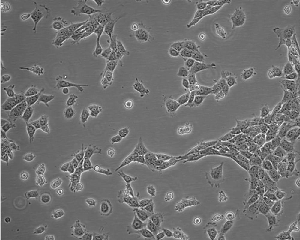如果細胞密度達80%-90%,即可進行傳代培養(yǎng)。1. 棄去培養(yǎng)上清,用不含鈣、鎂離子的PBS潤洗細胞1-2次。2. 加2ml消化液(0.25%Trypsin-0.53mM EDTA)于培養(yǎng)瓶中,置于37℃培養(yǎng)箱中消化1-2分鐘,然后在顯微鏡下觀察細胞消化情況,若細胞大部分變圓并脫落,迅速拿回操作臺,輕敲幾下培養(yǎng)瓶后加少量培養(yǎng)基終止消化。3. 按6-8ml/瓶補加培養(yǎng)基,輕輕打勻后吸出,在1000RPM條件下離心4分鐘,棄去上清液,補加1-2mL培養(yǎng)液后吹勻。4. 將細胞懸液按1:2到1:5的比例分到新的含8ml培養(yǎng)基的新皿中或者瓶中 |