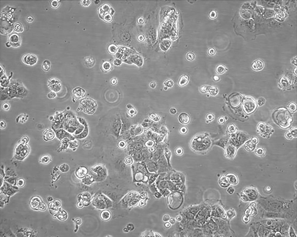 如果細胞密度達80%-90%,即可進行傳代培養(yǎng)。1. 棄去培養(yǎng)上清,用不含鈣、鎂離子的PBS潤洗細胞1-2次。2. 加2ml消化液(0.25%Trypsin-0.53mM EDTA)于培養(yǎng)瓶中,置于37℃培養(yǎng)箱中消化1-2分鐘,然后在顯微鏡下觀察細胞消化情況,若細胞大部分變圓并脫落,迅速拿回操作臺,輕敲幾下培養(yǎng)瓶后加少量培養(yǎng)基終止消化。3. 按6-8ml/瓶補加培養(yǎng)基,輕輕打勻后吸出,在1000RPM條件下離心4分鐘,棄去上清液,補加1-2mL培養(yǎng)液后吹勻。4. 將細胞懸液按1:2到1:5的比例分到新的含8ml培養(yǎng)基的新皿中或者瓶中 |