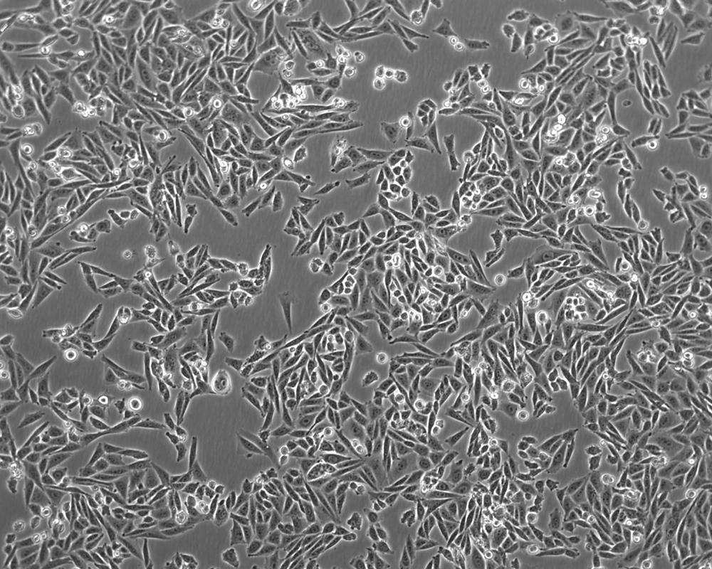 如果細(xì)胞密度達(dá)80%-90%,即可進(jìn)行傳代培養(yǎng)。1. 棄去培養(yǎng)上清,用不含鈣、鎂離子的PBS潤洗細(xì)胞1-2次。2. 加2ml消化液(0.25%Trypsin-0.53mM EDTA)于培養(yǎng)瓶中,置于37℃培養(yǎng)箱中消化1-2分鐘,然后在顯微鏡下觀察細(xì)胞消化情況,若細(xì)胞大部分變圓并脫落,迅速拿回操作臺(tái),輕敲幾下培養(yǎng)瓶后加少量培養(yǎng)基終止消化。3. 按6-8ml/瓶補(bǔ)加培養(yǎng)基,輕輕打勻后吸出,在1000RPM條件下離心4分鐘,棄去上清液,補(bǔ)加1-2mL培養(yǎng)液后吹勻。4. 將細(xì)胞懸液按1:2到1:5的比例分到新的含8ml培養(yǎng)基的新皿中或者瓶中 |