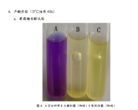 3、 將普通變形桿菌接種到生理生化檢測培養(yǎng)基中,37℃培養(yǎng)48h。檢測菌種生理生化特性。