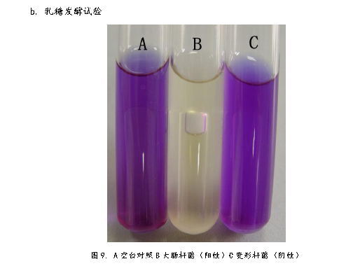 3、 將產(chǎn)氣腸桿菌接種到生理生化檢測(cè)培養(yǎng)基中,37℃培養(yǎng)48h。檢測(cè)菌種生理生化特性。