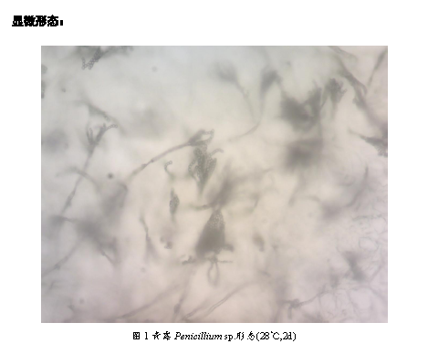 青霉采用玻璃紙法在PDA培養(yǎng)基上接種,28℃培養(yǎng)。第2天即可看到青霉產(chǎn)孢,產(chǎn)孢量較大。青霉菌屬多細(xì)胞,營(yíng)養(yǎng)菌絲體無(wú)色或淡色。菌絲有橫隔,分生孢子梗亦有橫隔,光滑或粗糙?;繜o(wú)足細(xì)胞,頂端不形成膨大的頂囊,其分生孢子梗經(jīng)過(guò)多次分枝,產(chǎn)生幾輪對(duì)稱或不對(duì)稱的小梗,形如掃帚,稱為帚狀體。分生孢子球形,生長(zhǎng)時(shí)呈藍(lán)綠色。培養(yǎng)一周后,可看到明顯的孢子脫落。連續(xù)觀察2周,仍然可以觀察到青霉的產(chǎn)孢結(jié)構(gòu),分生孢子易觀察。