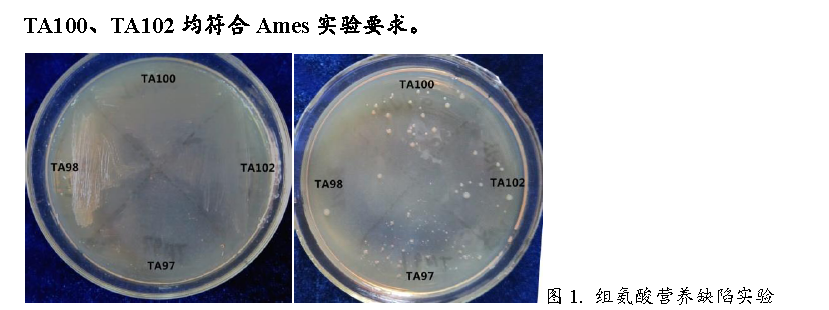 綜合以上結(jié)果,本實(shí)驗(yàn)選用的鼠傷寒沙門氏組氨酸缺陷型菌株TA97、TA98、TA100、TA102均符合Ames實(shí)驗(yàn)要求。