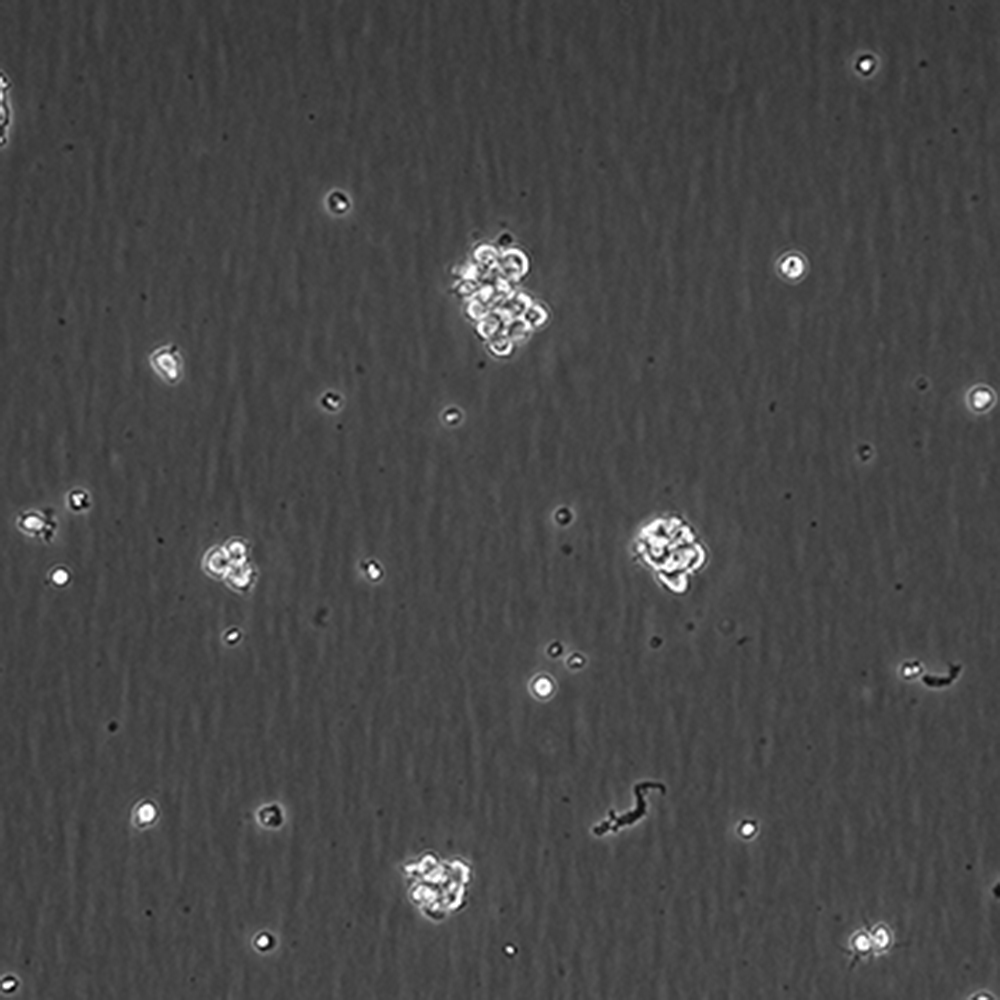 將含有1mL細(xì)胞懸液的凍存管在37℃水浴中迅速搖晃解凍,加入4mL培養(yǎng)基混合均勻。在1000RPM條件下離心4分鐘,棄去上清液,補(bǔ)加1-2mL培養(yǎng)基后吹勻。然后將所有細(xì)胞懸液加入培養(yǎng)瓶中培養(yǎng)過夜(或?qū)⒓?xì)胞懸液加入10cm皿中,加入約8ml培養(yǎng)基,培養(yǎng)過夜)。第二天換液并檢查細(xì)胞密度。 |